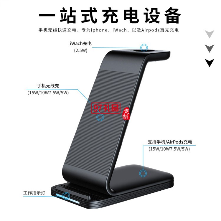 三合一無線充電器 快充10W手機耳機手表無線充