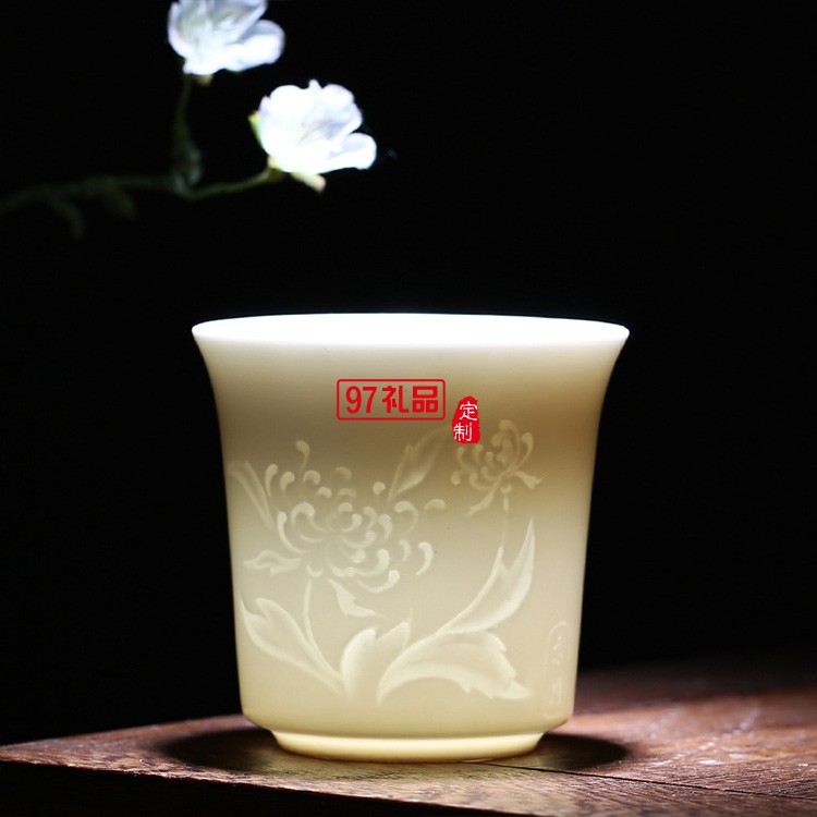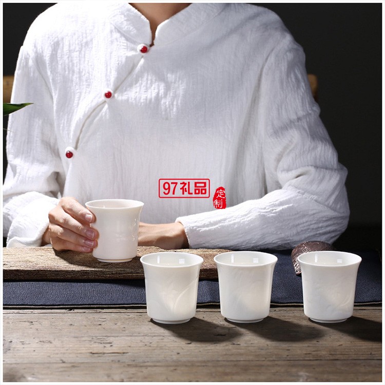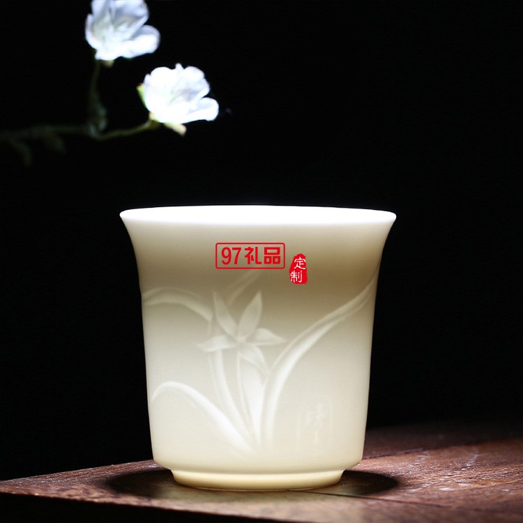 白瓷品茗杯梅蘭竹菊陶瓷茶杯主人杯大號單杯