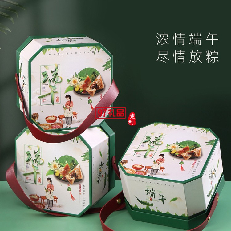 創意現貨八角創意手提端午粽子包裝盒6個裝空盒定制LOGO禮盒