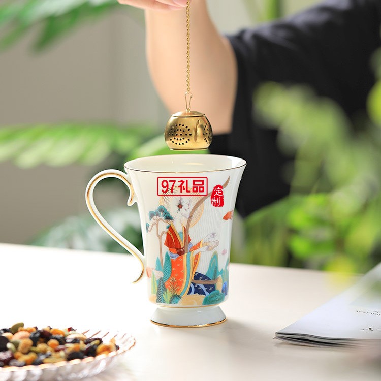 國潮陶瓷馬克杯對杯骨瓷咖啡杯男女水杯創意情侶禮物禮盒裝