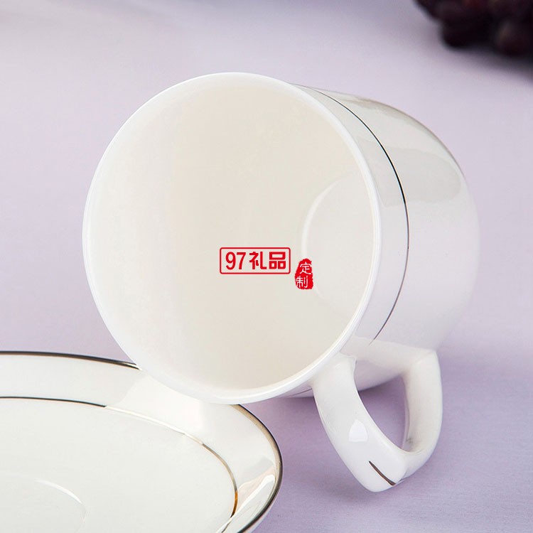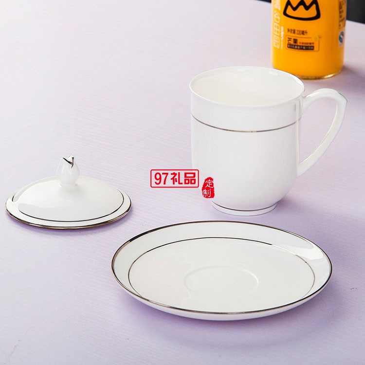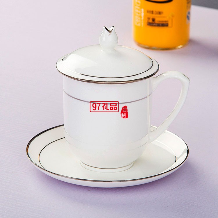 景德鎮骨瓷杯陶瓷茶具酒店會議杯定制家用帶蓋水杯描金邊茶杯