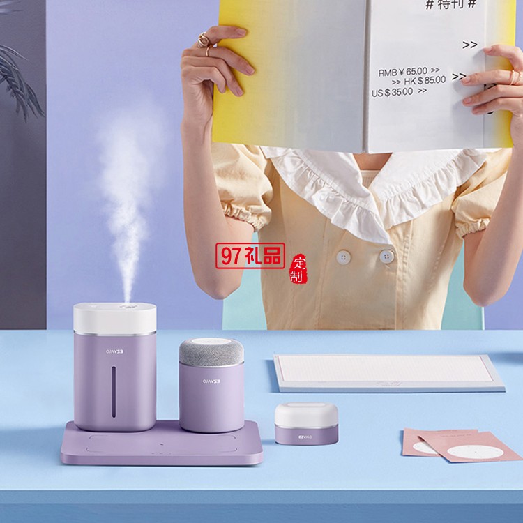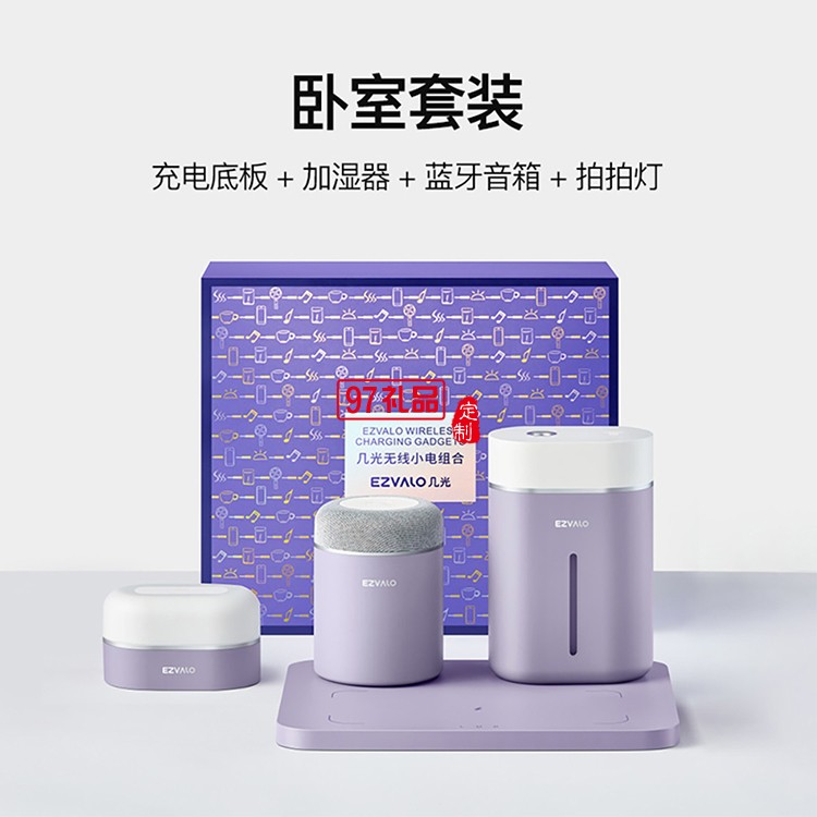 無線小電組合羅蘭紫4件套充電底板 加濕器 藍牙音響 拍拍燈定制公司廣告
