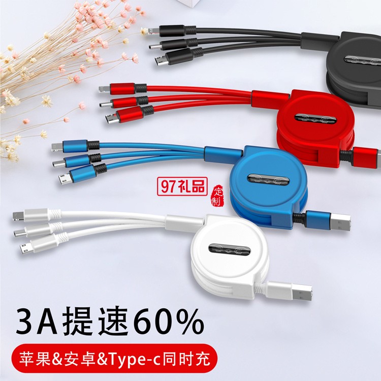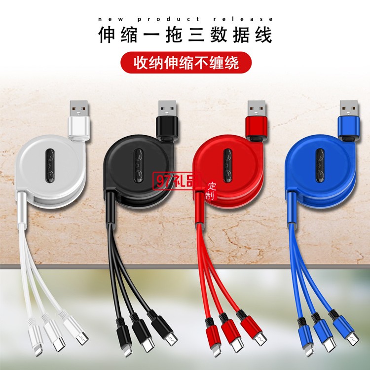 伸縮一拖三數據線定制logo