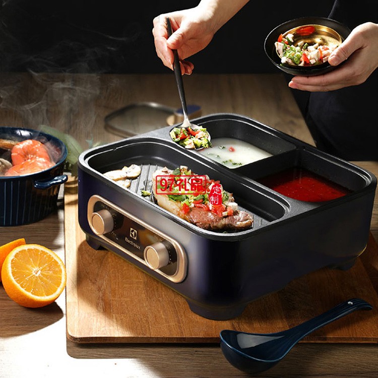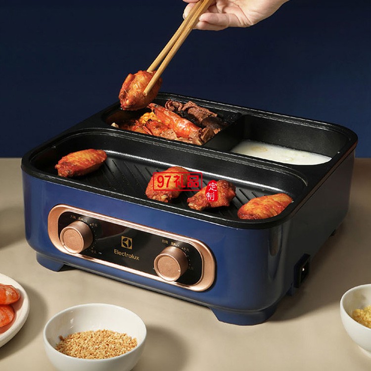 分區獨立控溫 不粘烤盤易清洗涮烤一體鍋