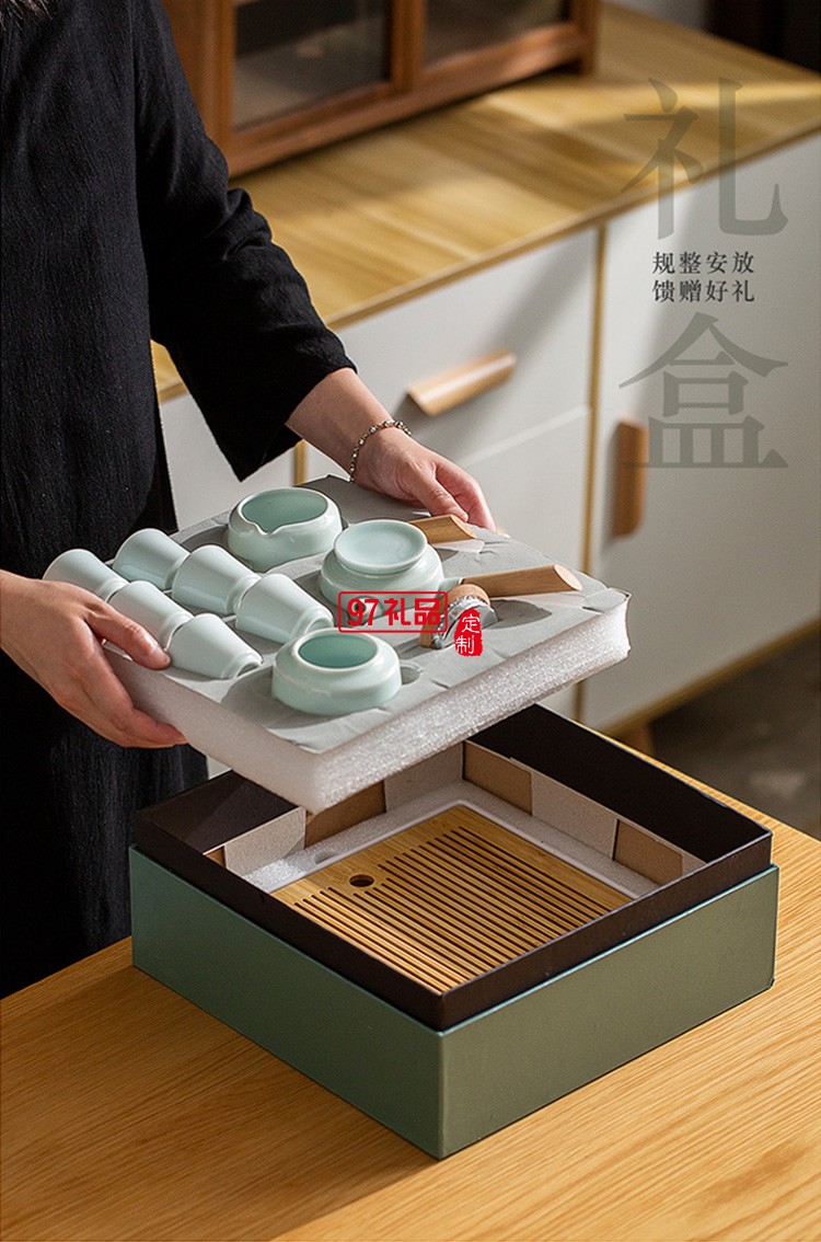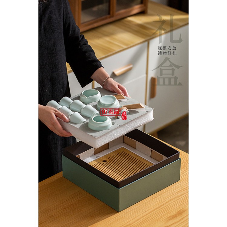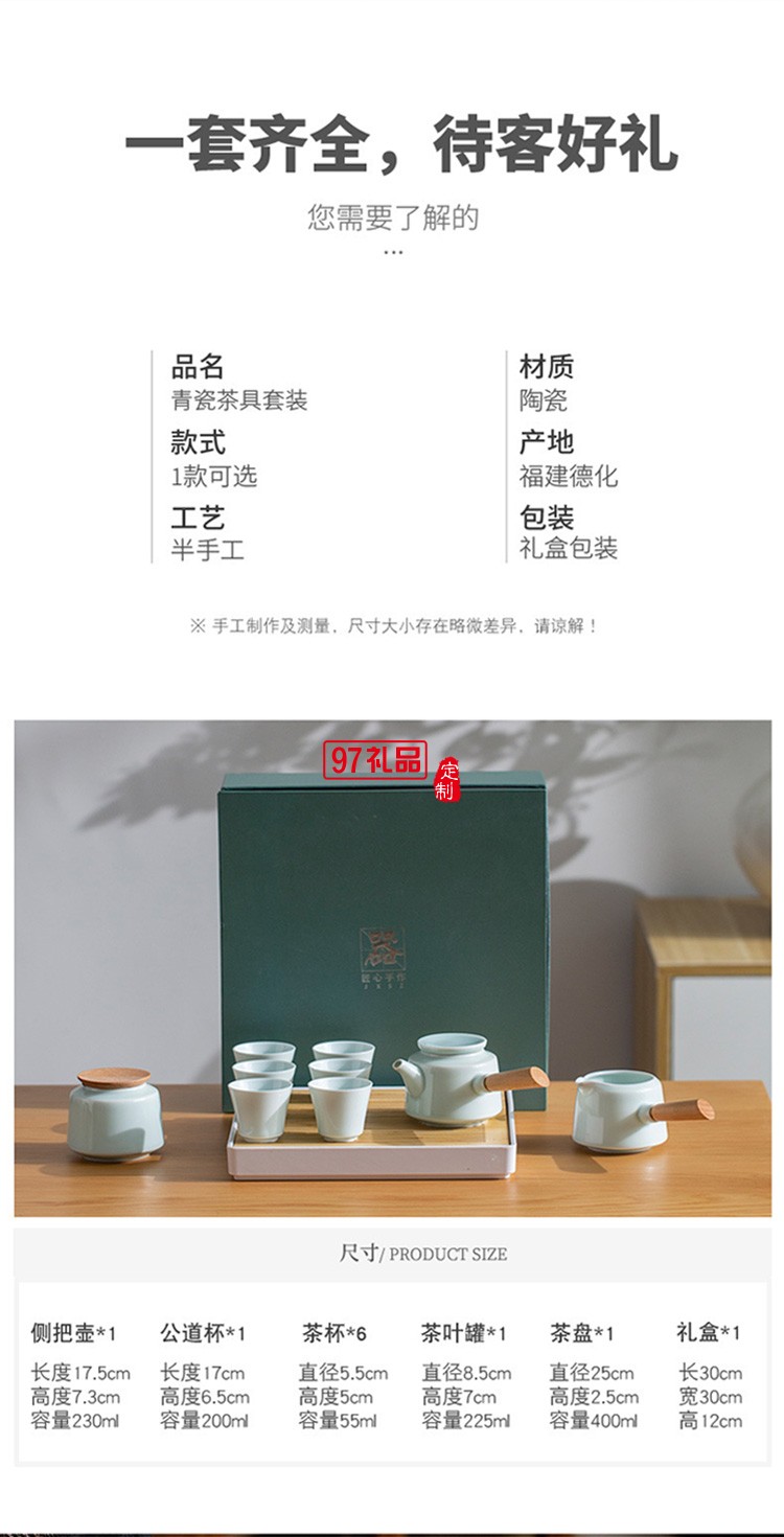 地產銀行禮品茶具套裝青瓷側把壺套裝保險商務伴手禮品LOGO