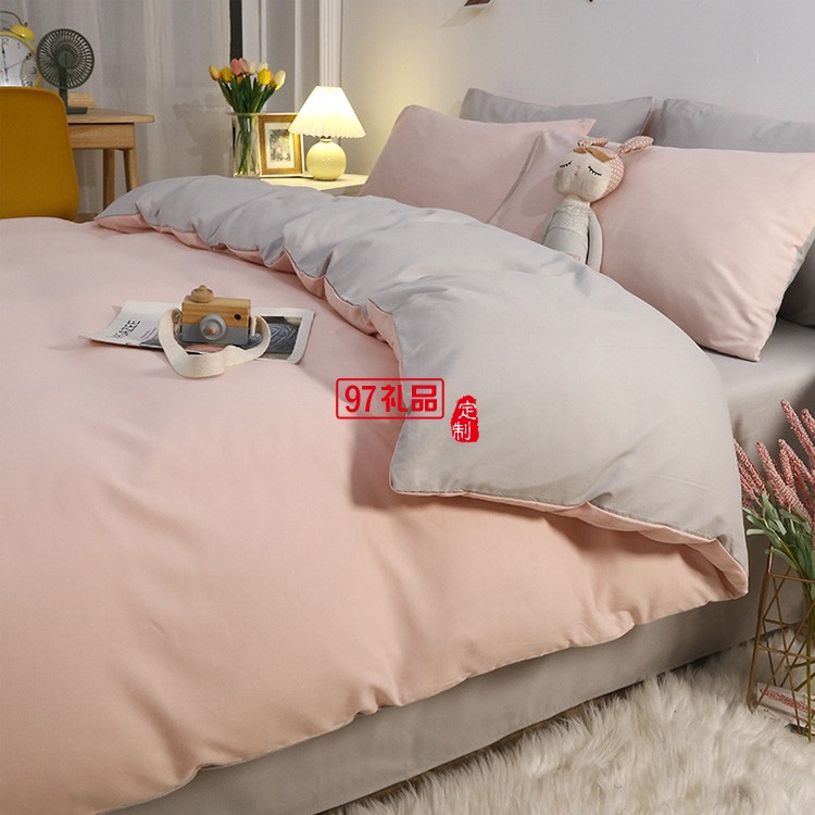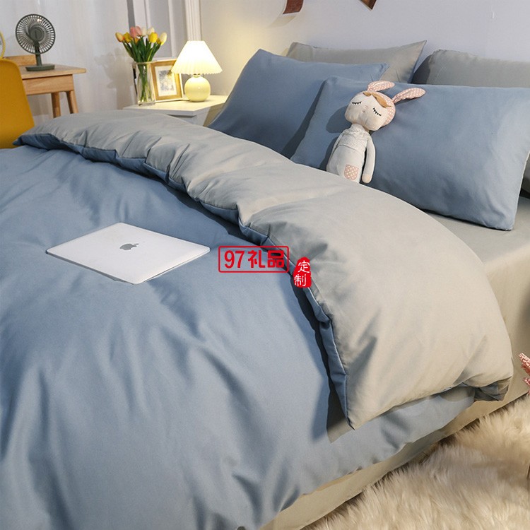 水洗棉四件套日系純色床單被罩4件套 簡約被套宿舍床上用品三件套