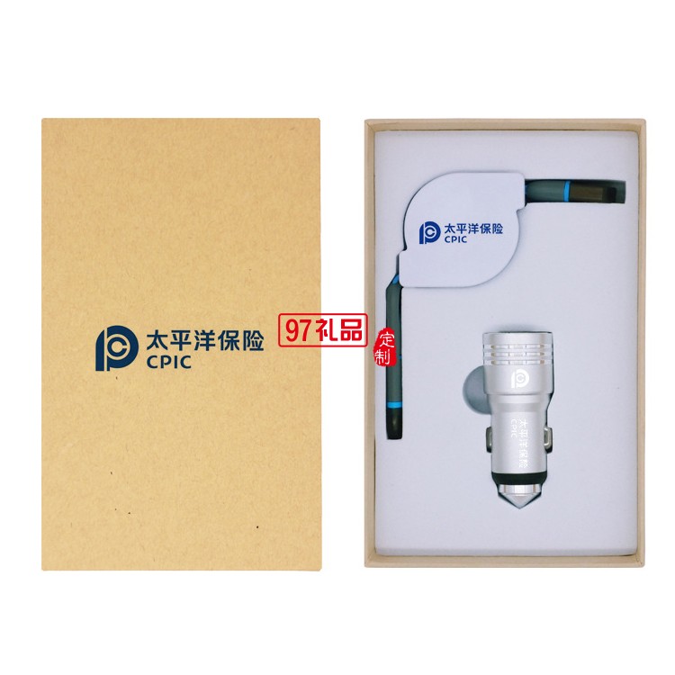 汽車用品4s店保險定制logo 數據線+安全錘套裝