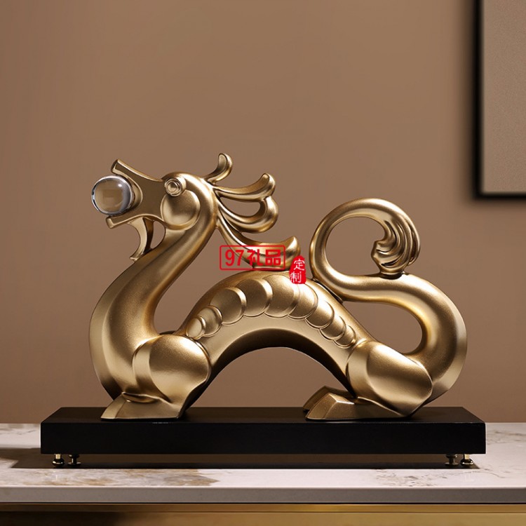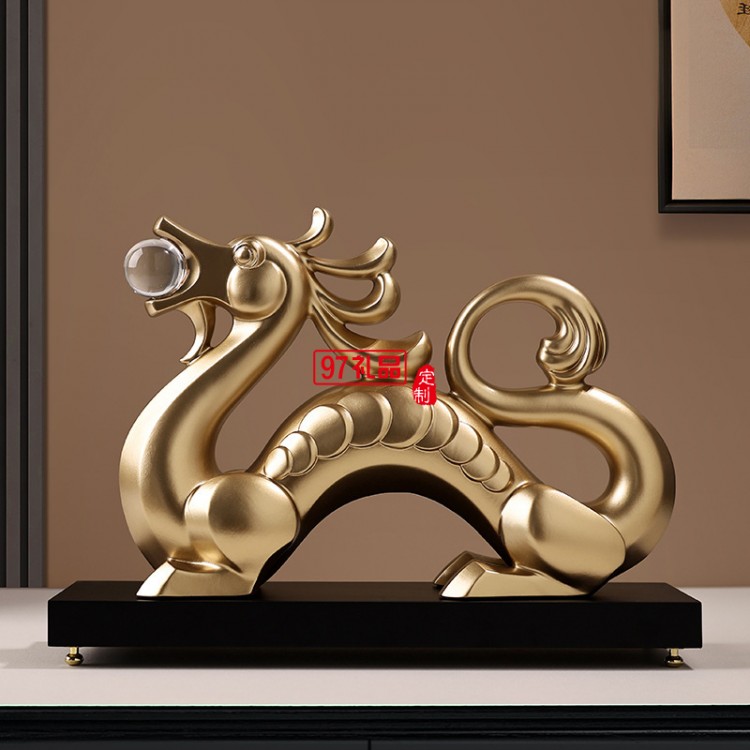 貝漢美新中式金龍擺件客廳酒柜書房辦公室裝飾品開業招財龍年禮物