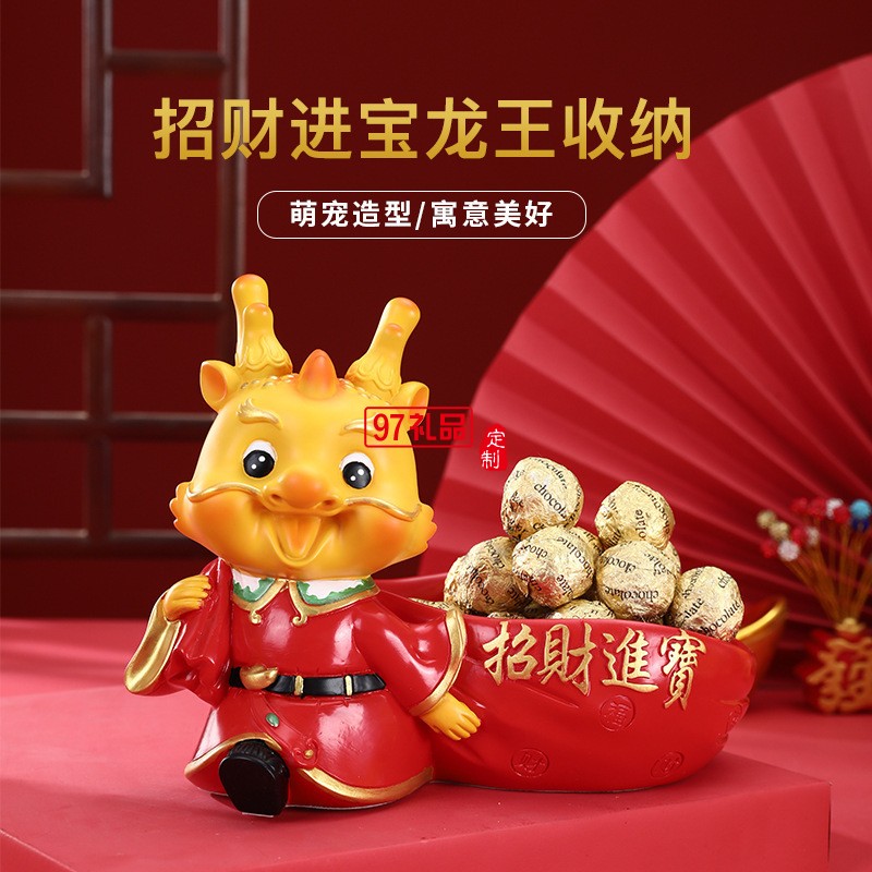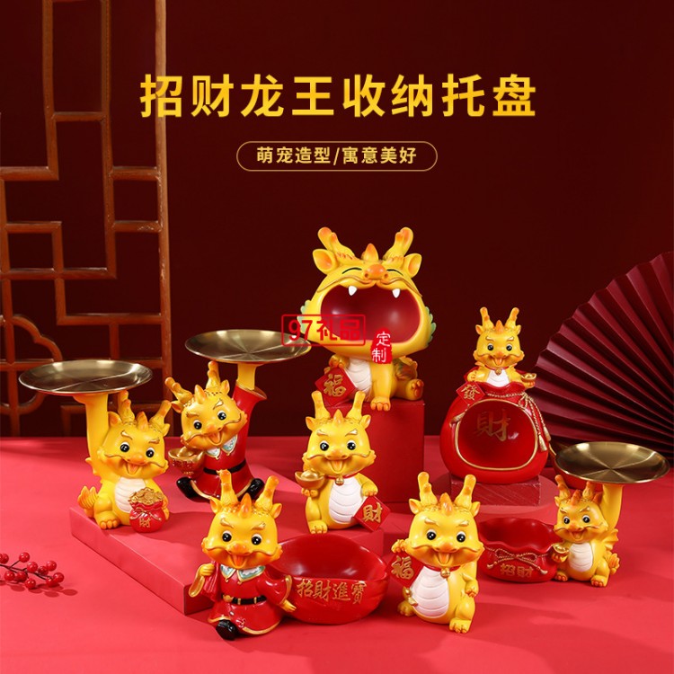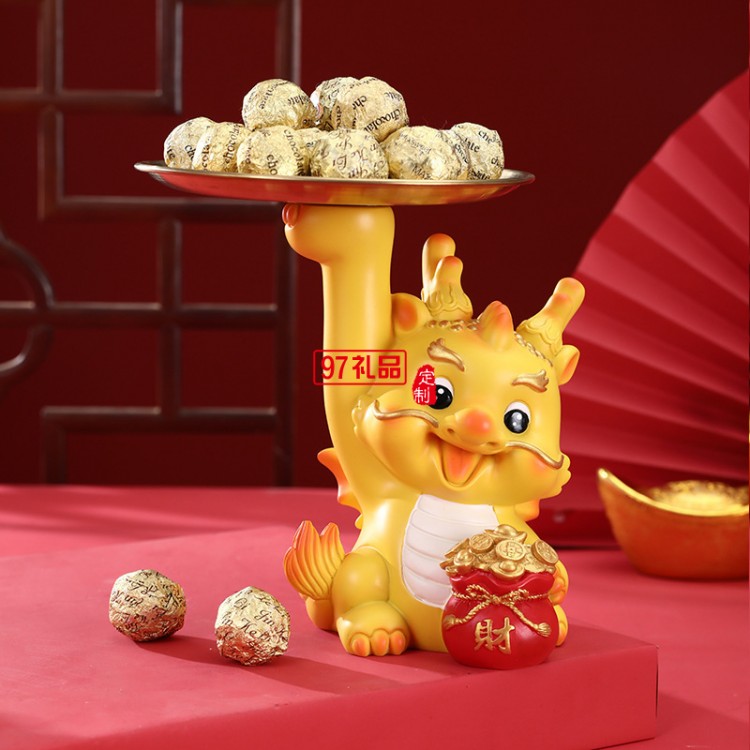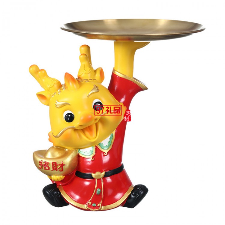新年創(chuàng)意生肖龍擺件桌面玄關(guān)收納托盤春節(jié)招財(cái)吉祥物禮品家居裝飾