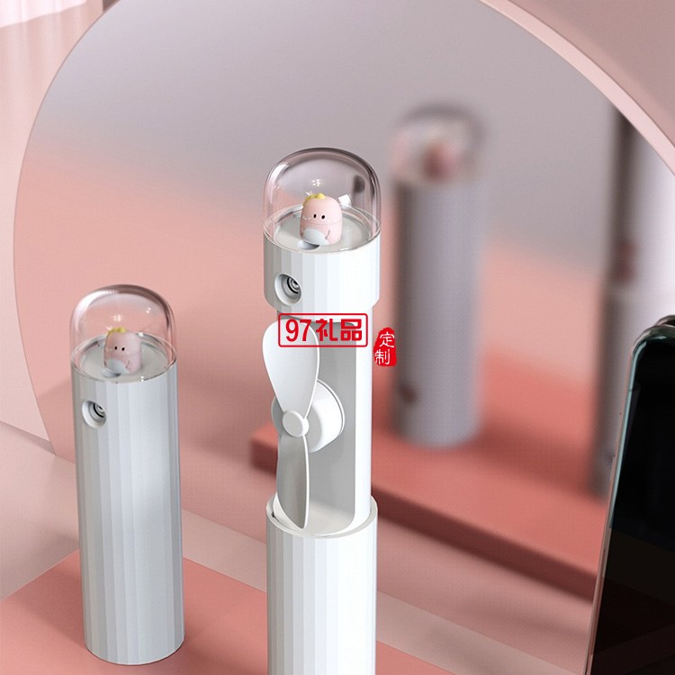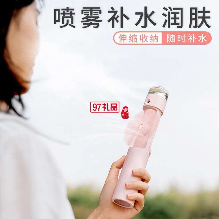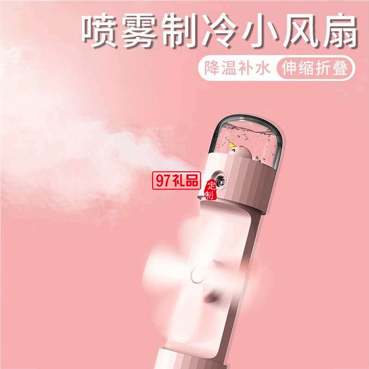 伸縮噴霧風扇卡通口袋便捷USB充電三合一迷你手持加濕扇
