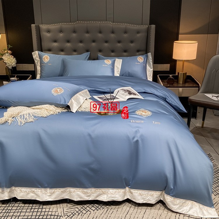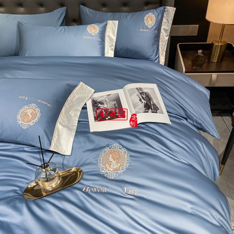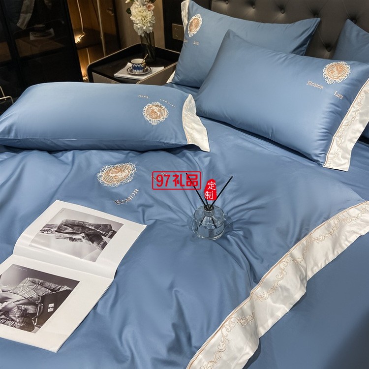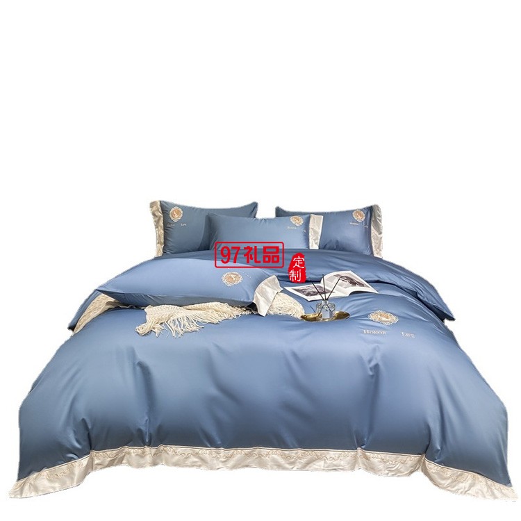 四件套北歐風(fēng)純色繡花四件套親膚棉輕奢床單套件