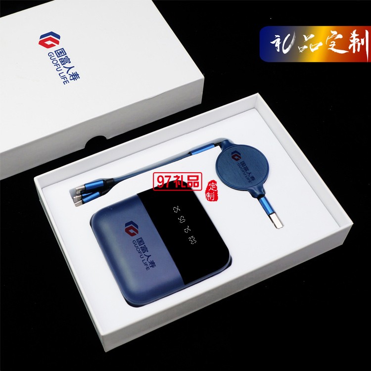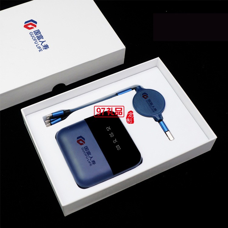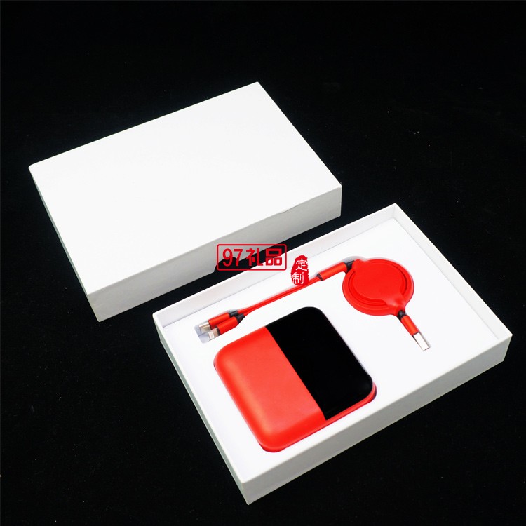 實用商務(wù)禮品套裝 充電寶10000毫安移動電源一拖三數(shù)據(jù)線定制logo