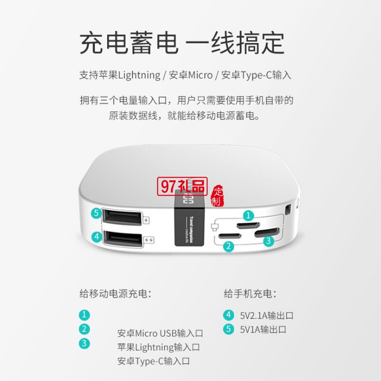 數顯移動電源充電寶10000毫安快充小巧公司廣告禮品定制