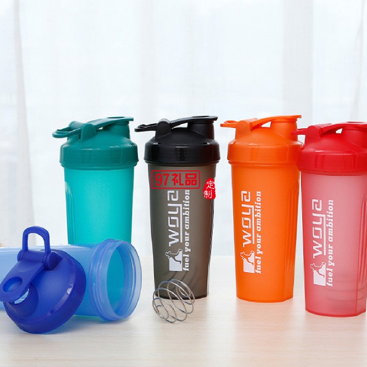 大容量健身運動水壺印制logo 手提便攜奶昔杯塑料蛋白粉搖搖杯