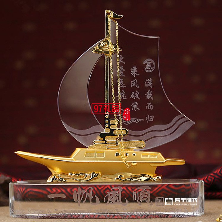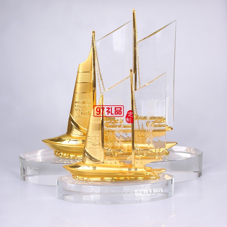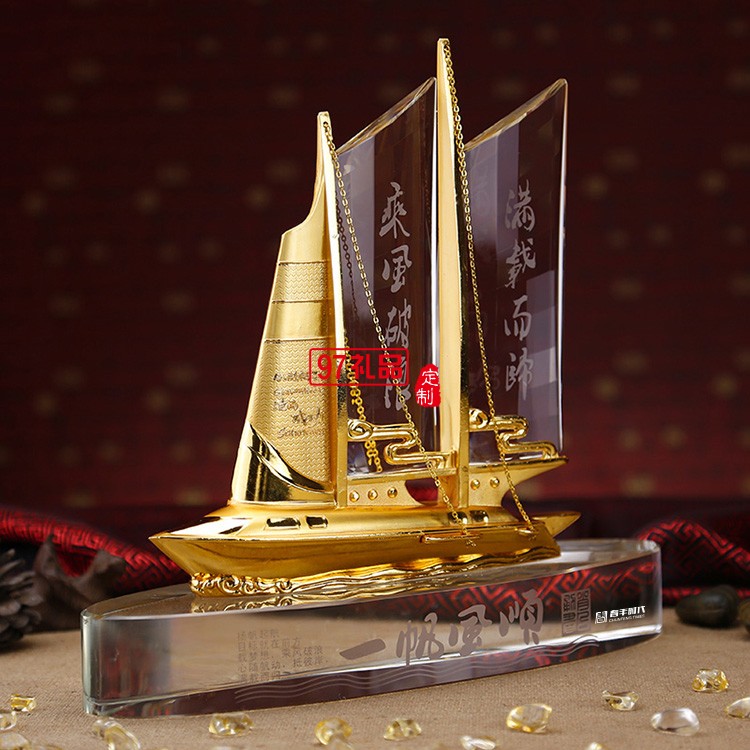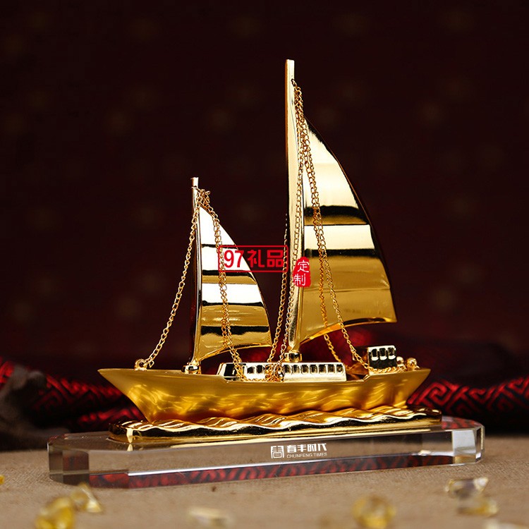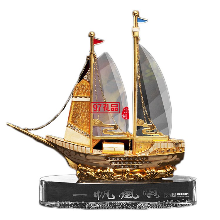 一帆風順合金工藝品擺件水晶船
