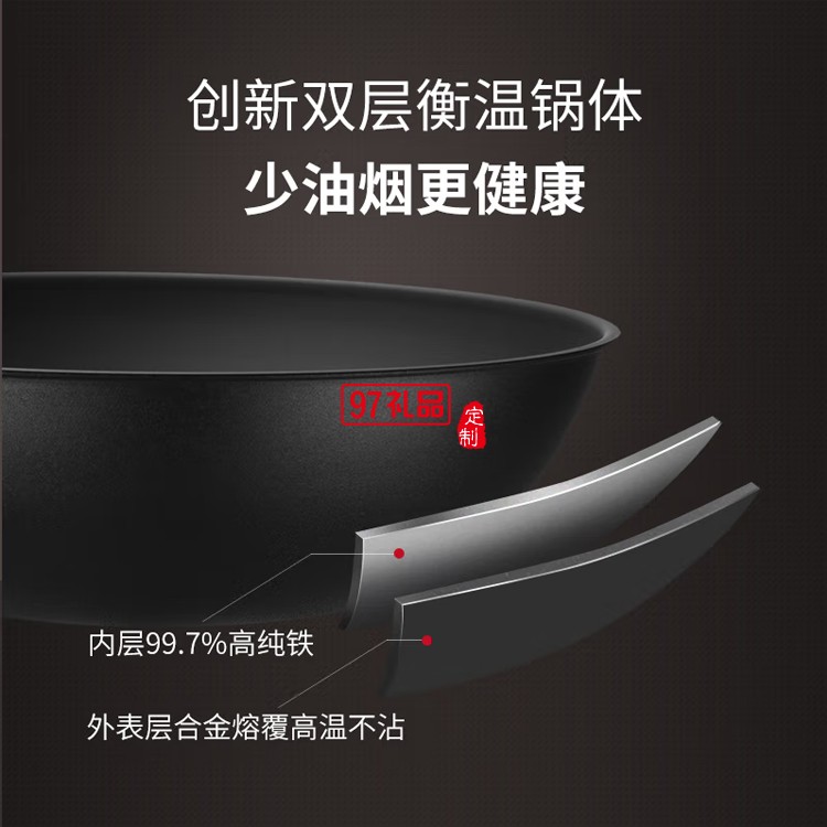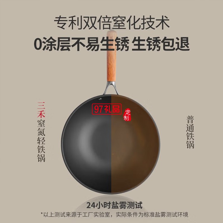 三禾 氮化炒鍋窒氮輕鐵鍋炒菜鍋無涂層30T1定制公司廣告禮品