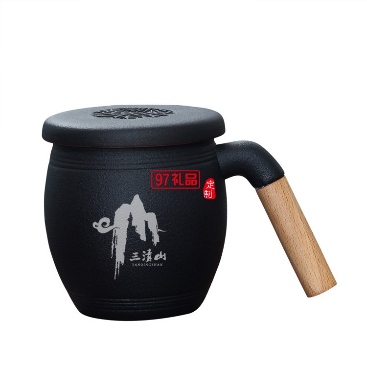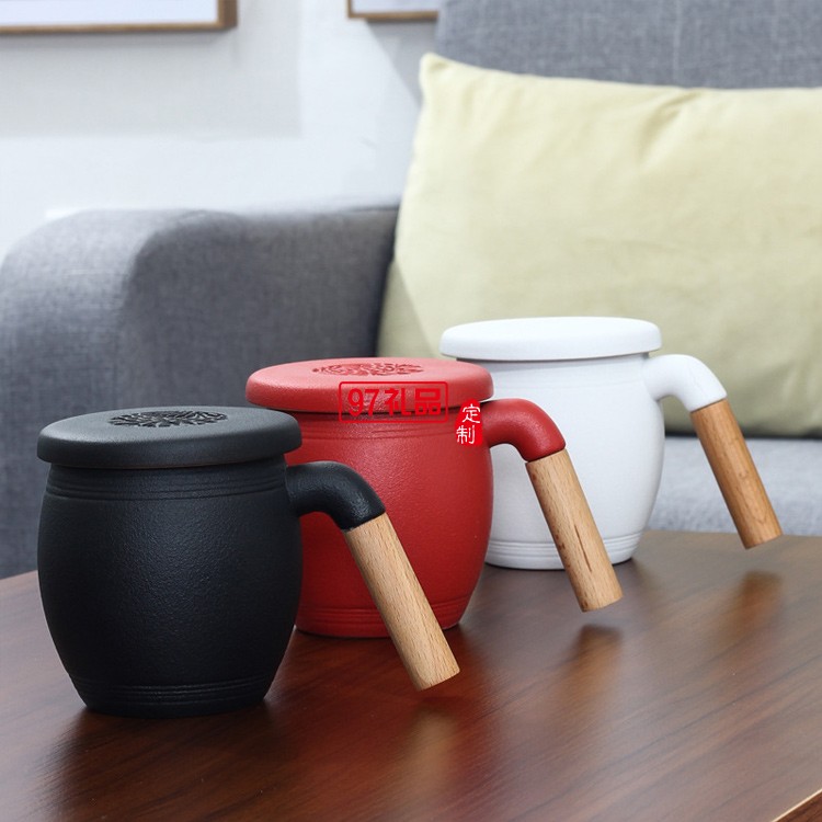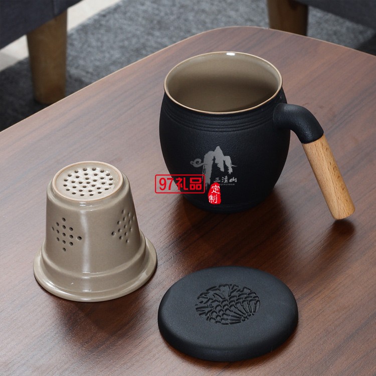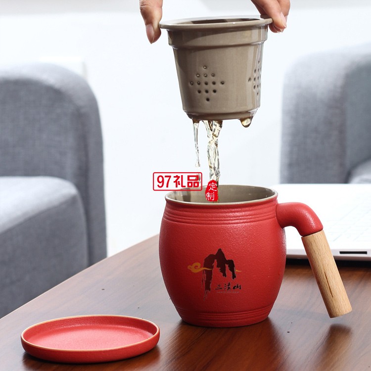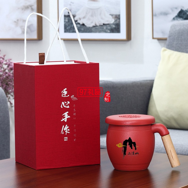 木柄茶水分離馬克杯帶蓋帶過濾網(wǎng)禮盒裝