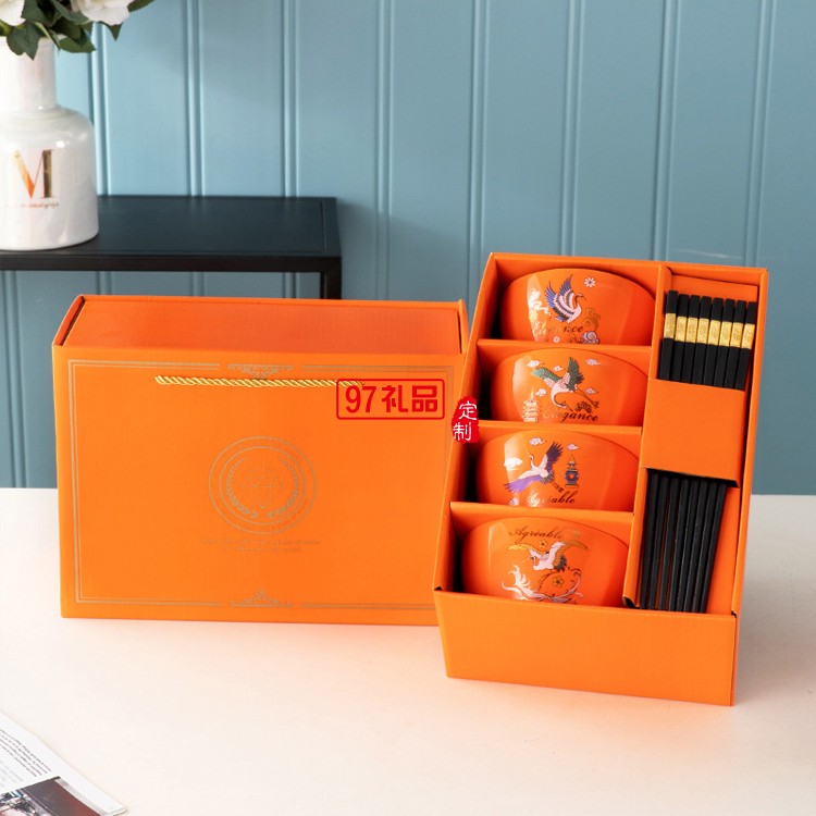 國潮風開業活動禮品碗筷套裝方碗陶瓷餐具禮盒套裝碗