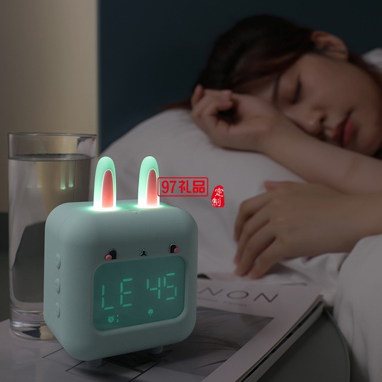 USB充電卡通淘氣兔自動(dòng)對(duì)時(shí)智能鬧鐘