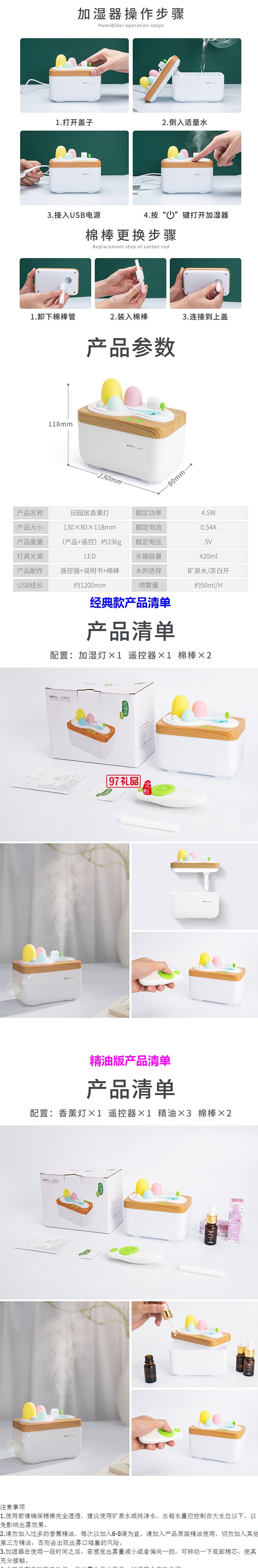 二代田園居香薰燈加濕器帶USB空氣凈化器