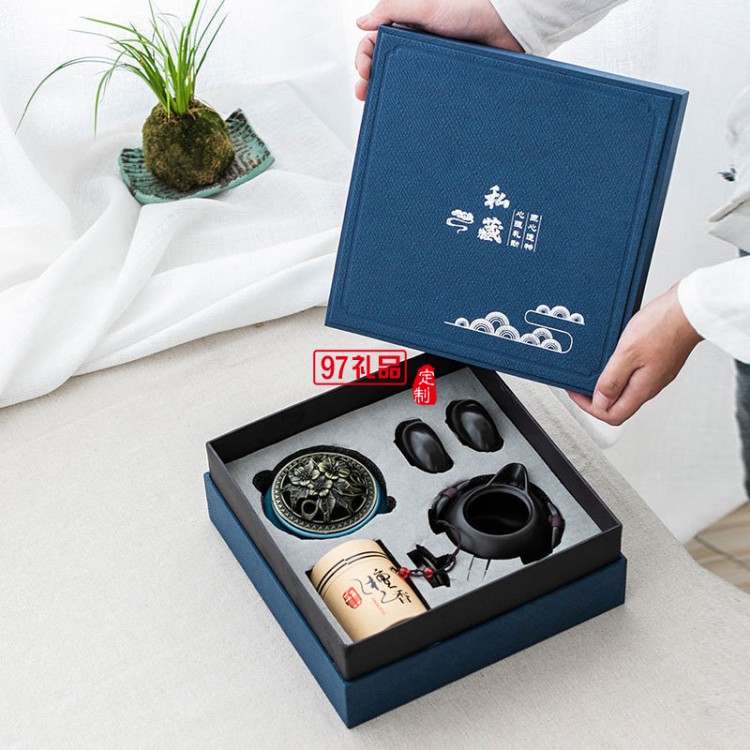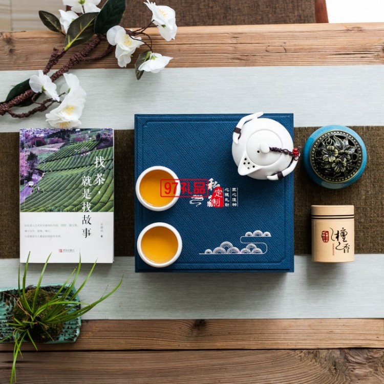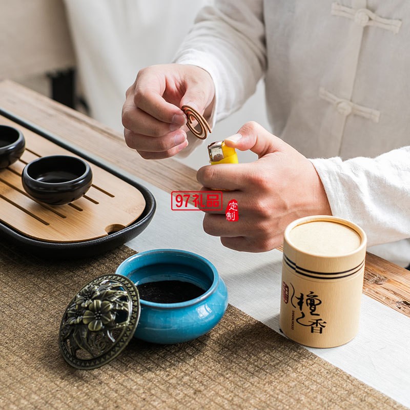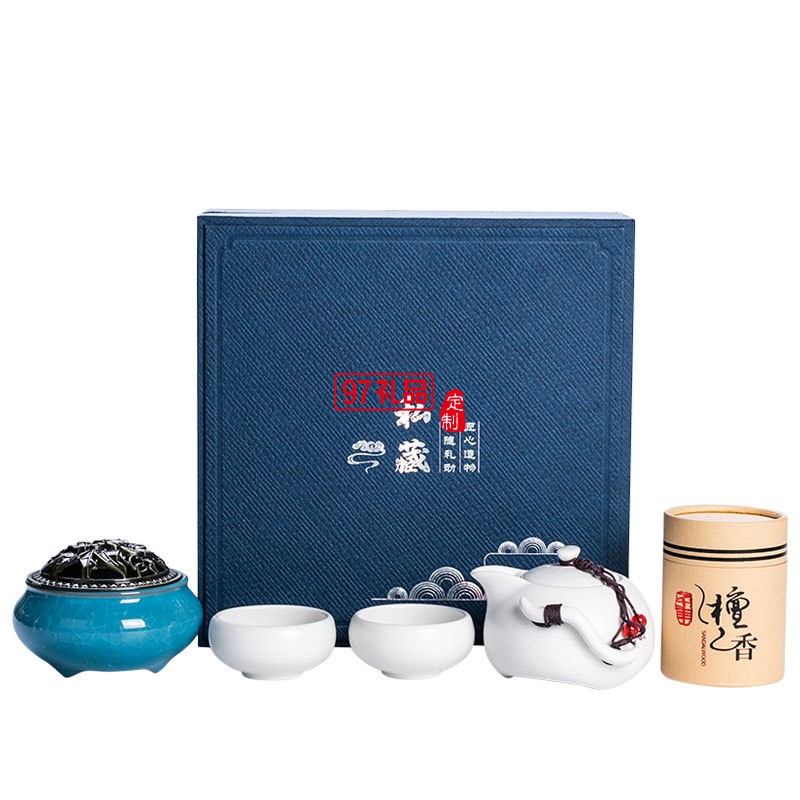 文化創(chuàng)意商務禮品香道茶具組合檀香爐陶瓷功夫茶具