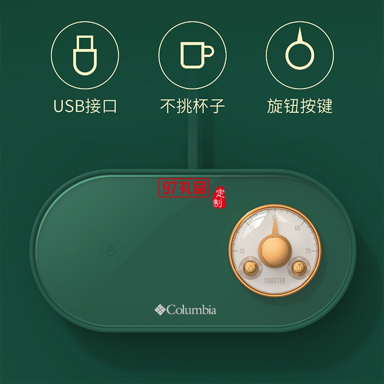 哥倫比亞戶外品牌定制USB恒溫暖杯墊復(fù)古懷表辦公家用便攜恒溫杯墊
