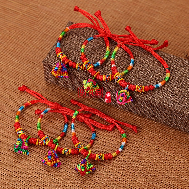 端午節五彩繩編織粽子手鏈節日禮品定制