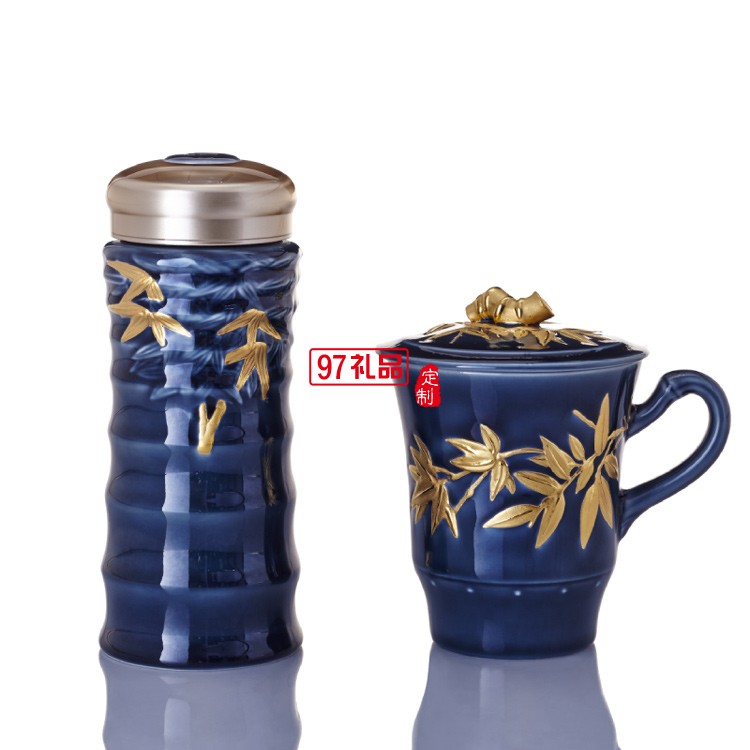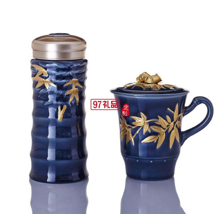 商務(wù)典范 大竹節(jié)隨身杯&高杯禮盒 350ml雙層/340ml 鎏金寶石