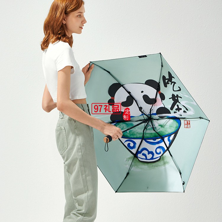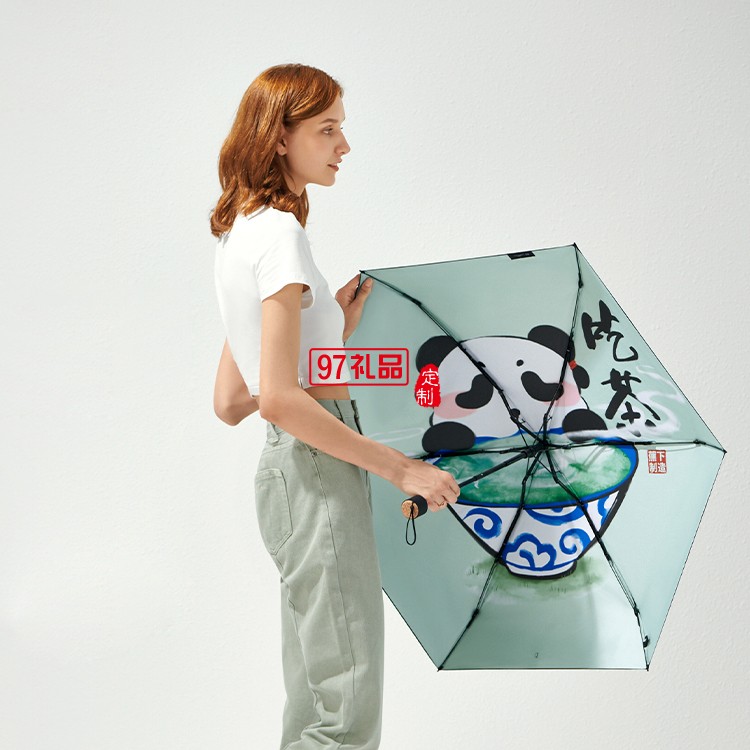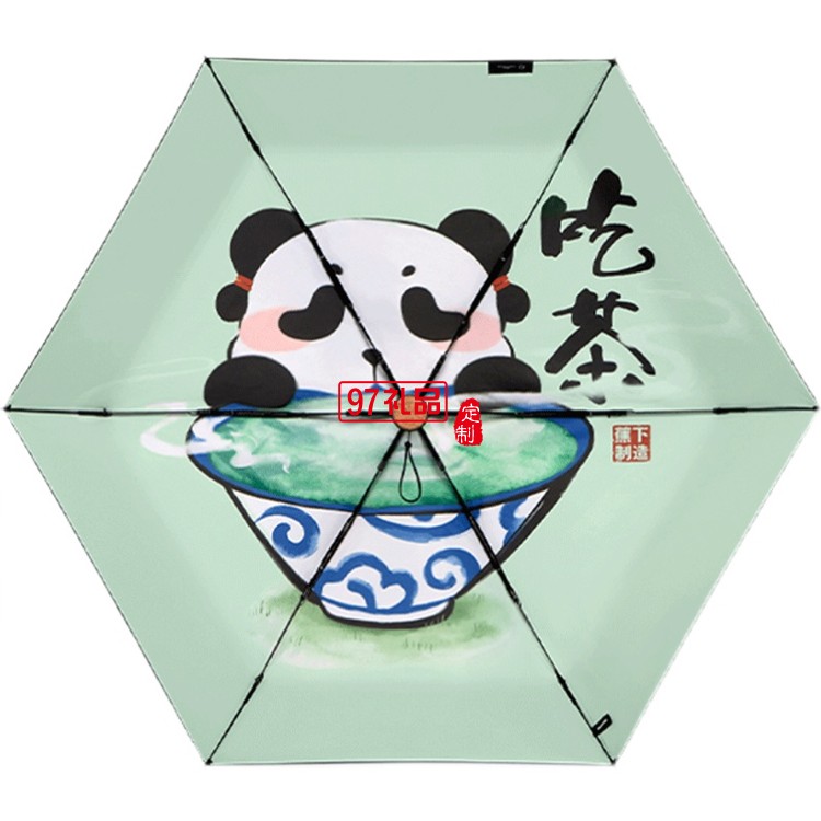 遮陽傘女晴雨兩用小巧便攜膠囊黑膠防曬國潮熊貓太陽傘定制公司廣告禮品