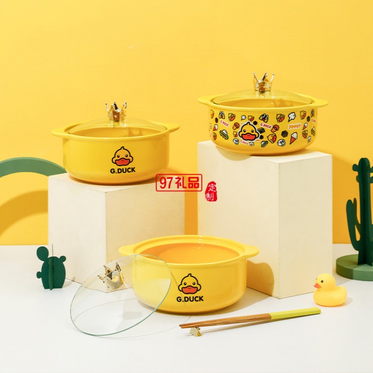 G.DUCK小黃鴨皇冠泡面碗禮盒套裝帶蓋碗禮品套裝陶瓷雙耳碗伴手禮