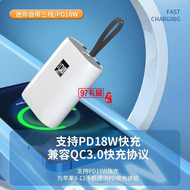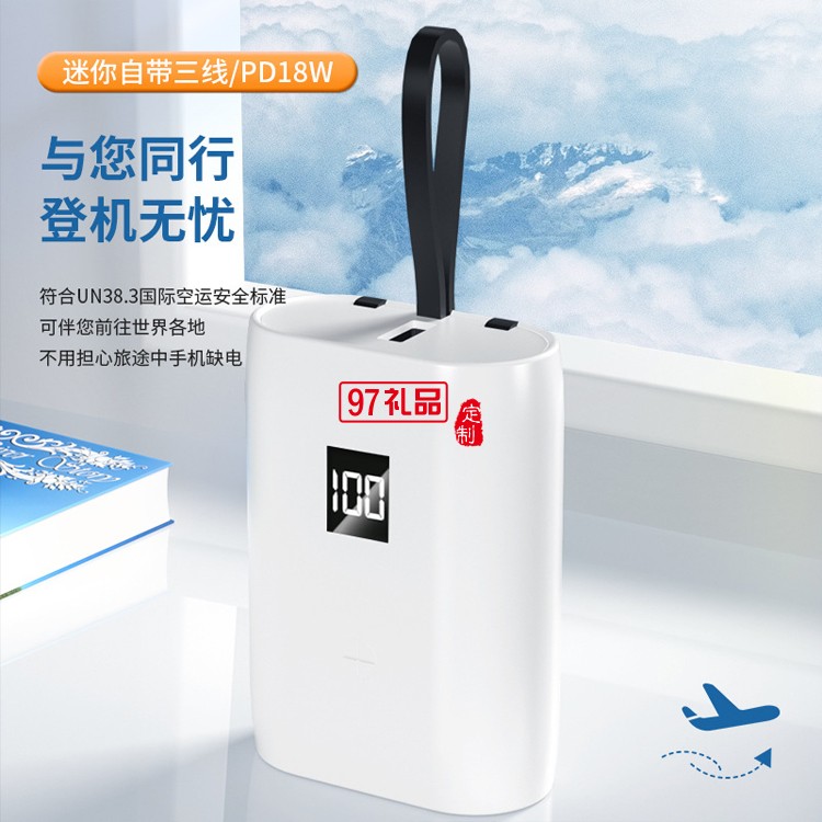 新款自帶線迷你移動電源小巧超10000mHA大容量
