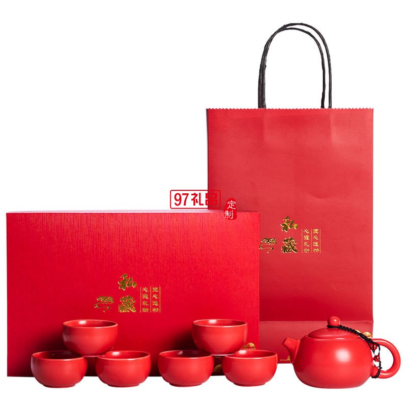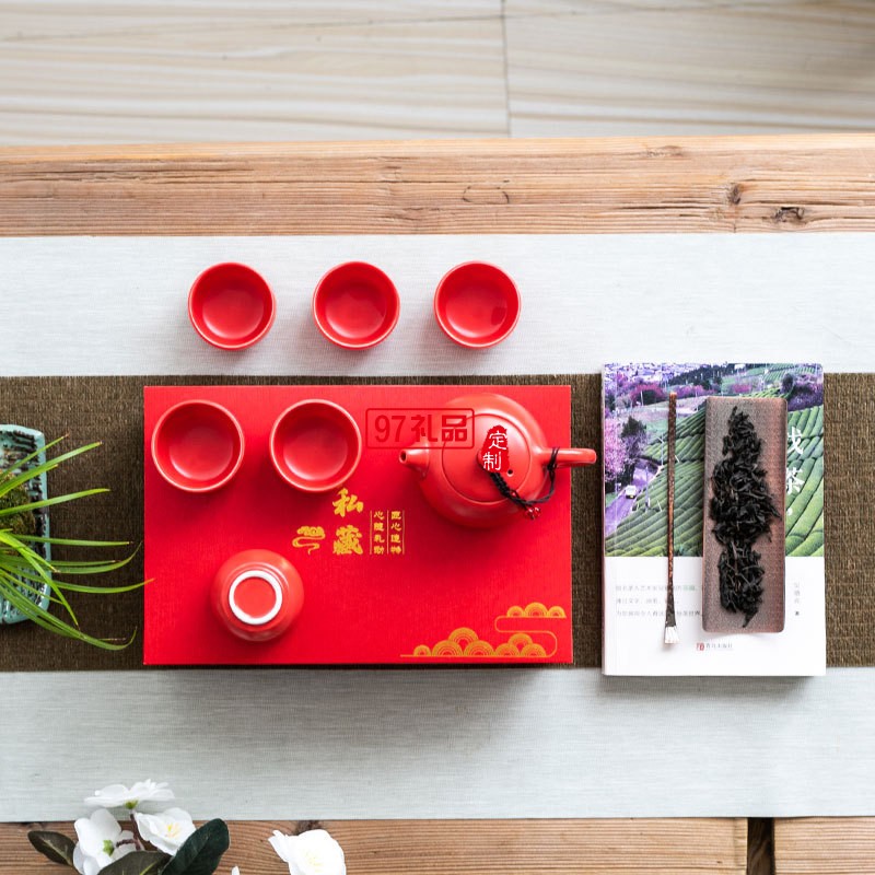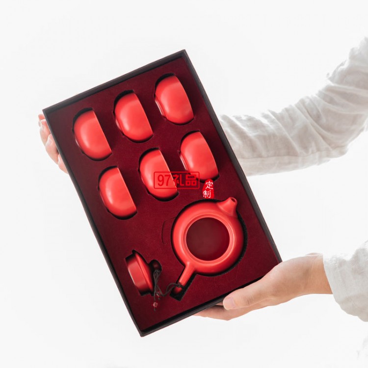 喜慶啞光紅色陶瓷茶具批發定制