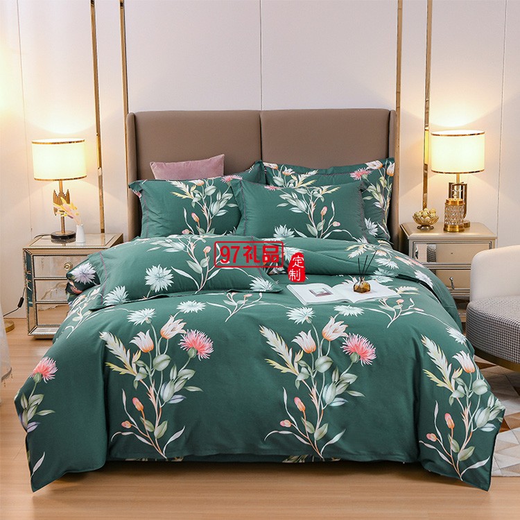 雅鹿 時尚全棉噴氣活性四件套 1.8m雙人床 純棉清新印花套件