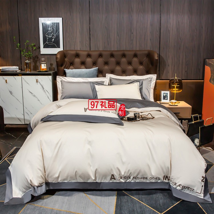 雅鹿 典雅風(fēng)140支全棉輕奢刺繡套件 高支高密純棉套件 雙版拼色新疆