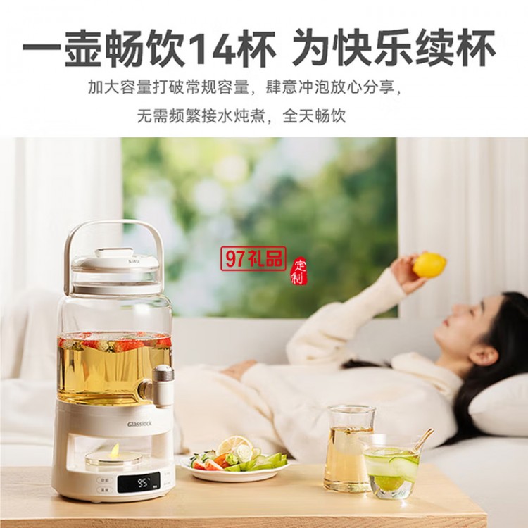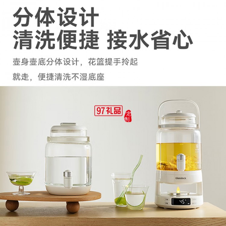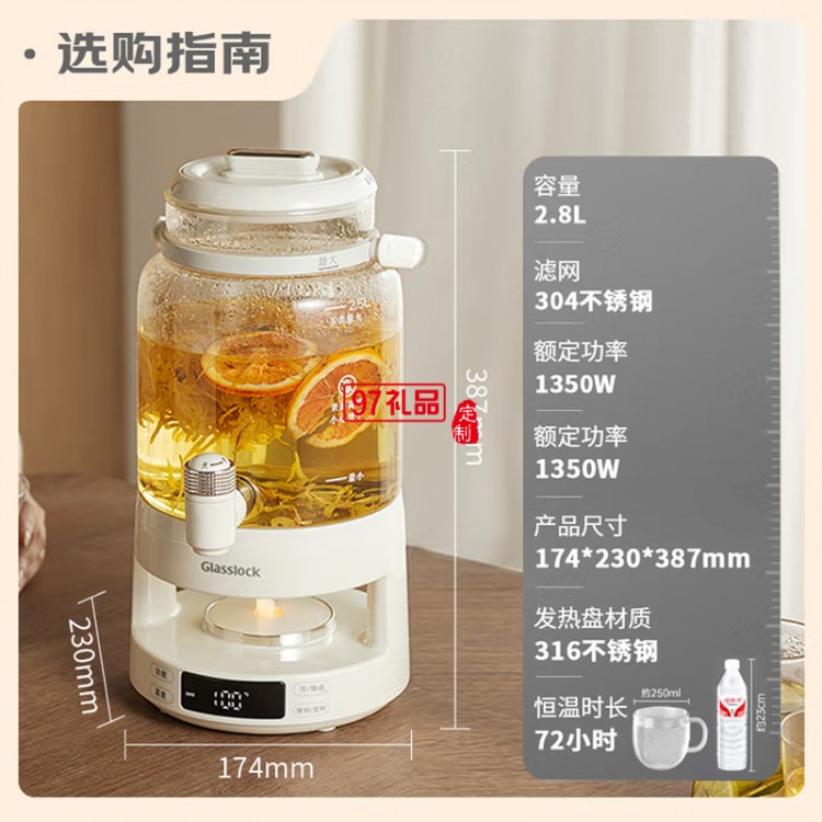 GLASSLOCK花茶電熱水瓶養生壺帶水龍頭恒溫玻璃煮果茶泡酒桶燒水壺