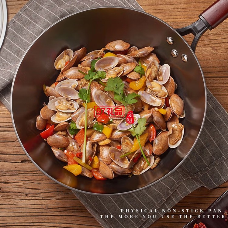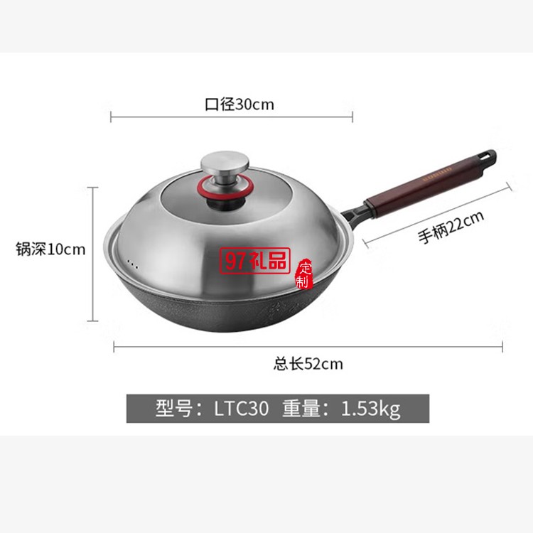 歐美達無涂層鐵鍋不粘炒鍋炒菜鍋 LTC30 30cm定制公司廣告禮品