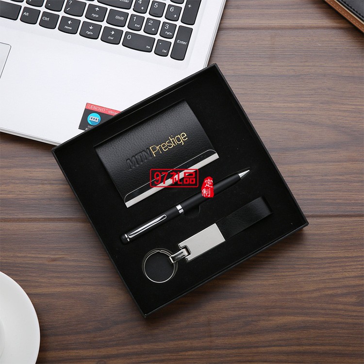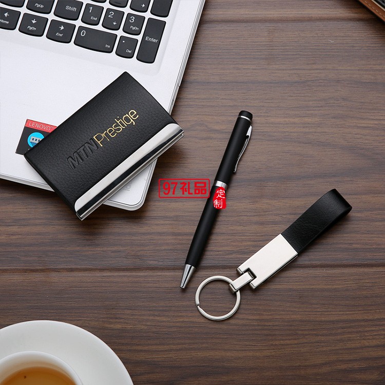 新款金屬簽字筆+名片盒+鑰匙扣辦公商務禮品套裝