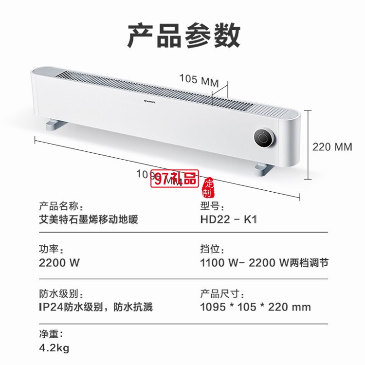 艾美特石墨烯踢腳線取暖器電暖器 HD22-K1定制公司廣告禮品