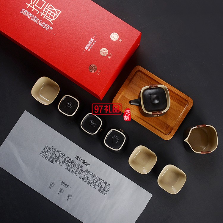家用茶具套裝 拾趣黑陶八件套 石頭剪刀布 禮品 定制 logo 簡約中