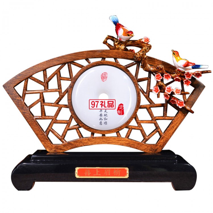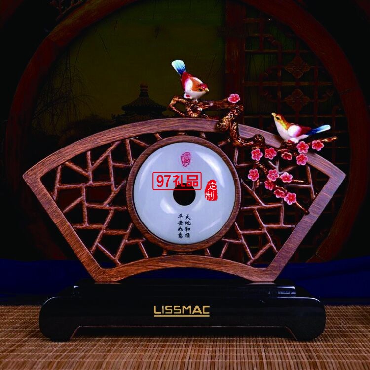 中國風古典玉石桌面屏風擺件紀念品定制禮品