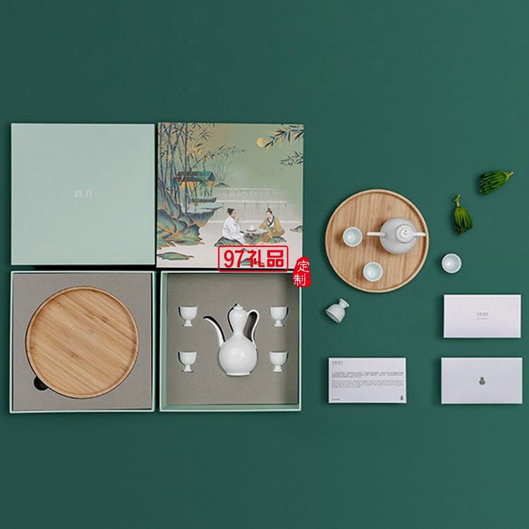 宋宴問(wèn)月酒具套裝景德鎮(zhèn)陶瓷手工酒壺禮盒中秋節(jié)日禮品定制