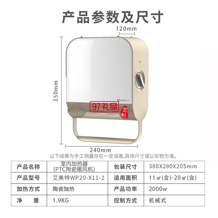 艾美特暖風(fēng)機(jī)美妝鏡節(jié)能浴室取暖器WP20-X11-2定制公司廣告禮品
