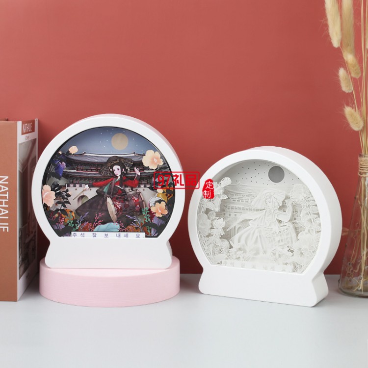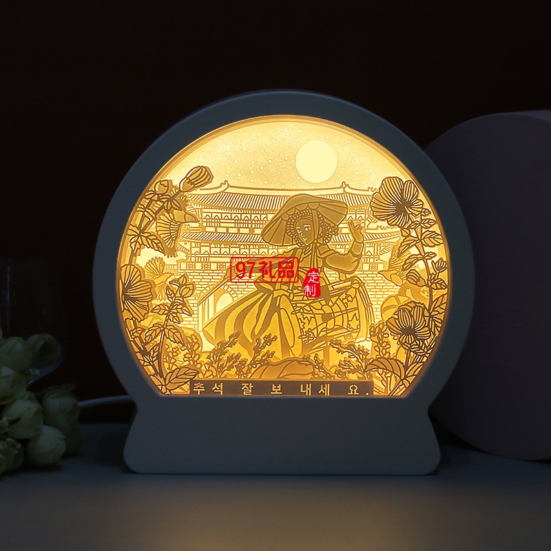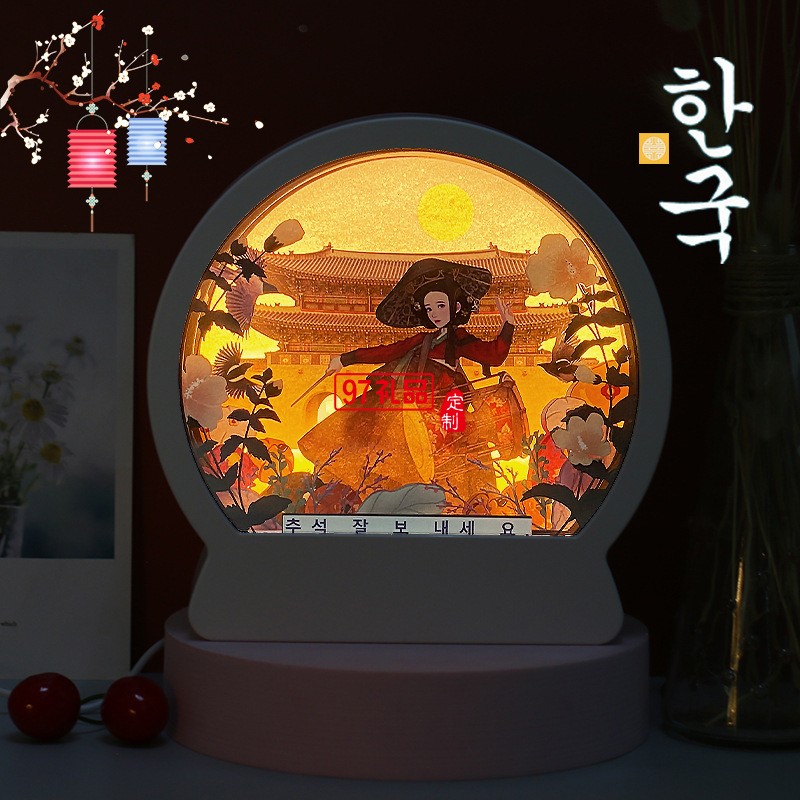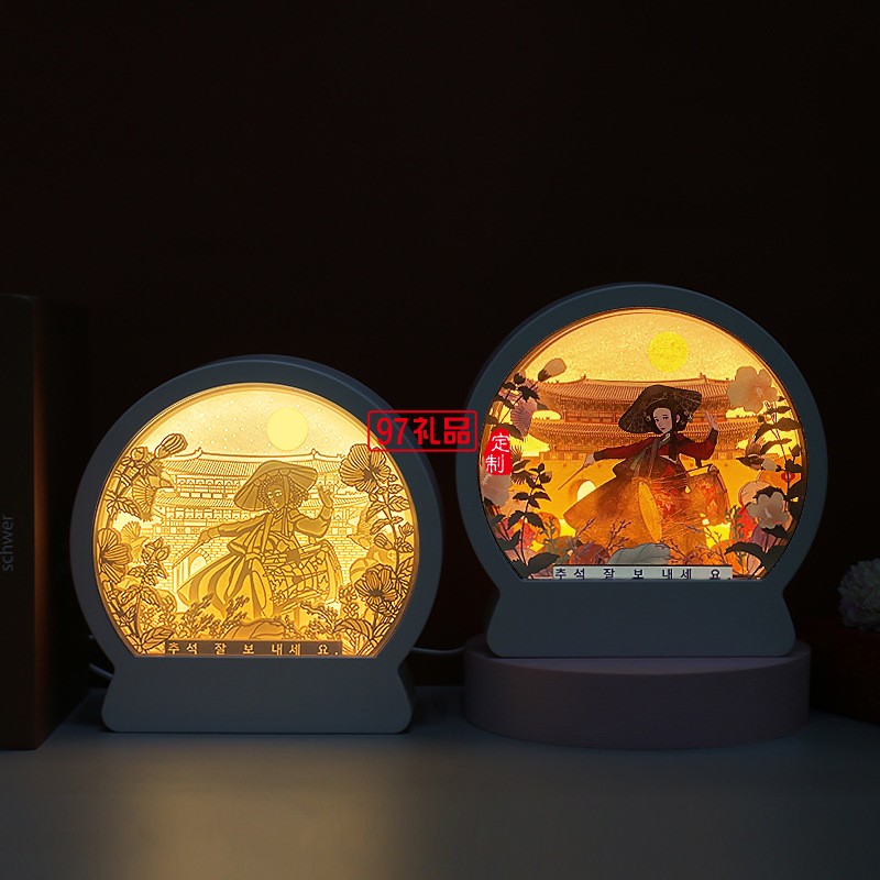 韓國中秋紙雕燈 韓式節(jié)日立體紙質(zhì)工藝禮品 臥室床頭小夜燈定制