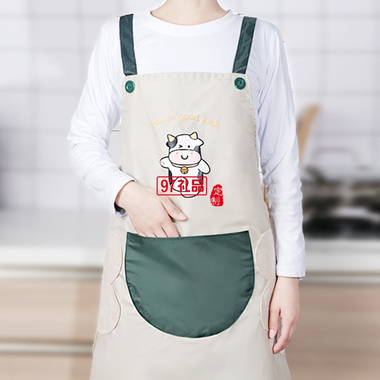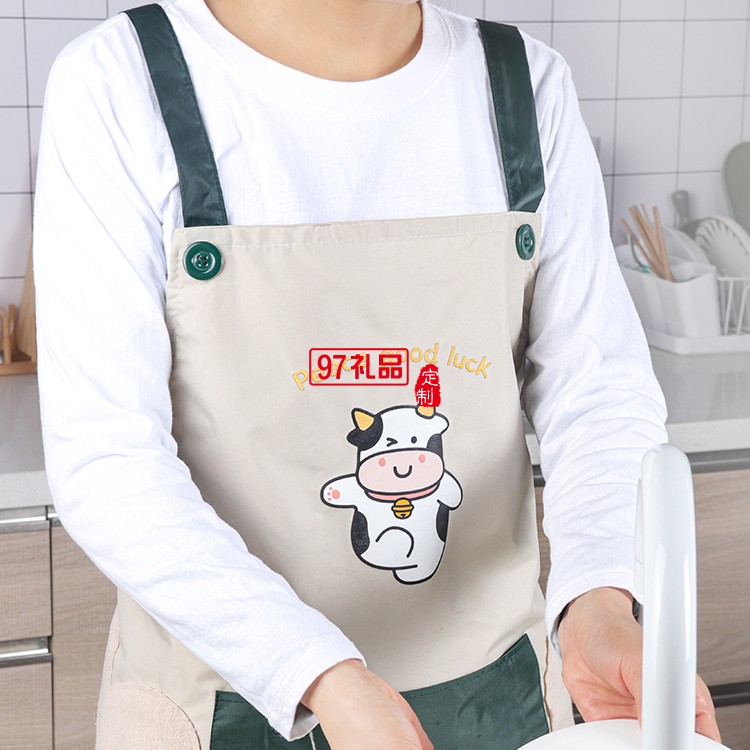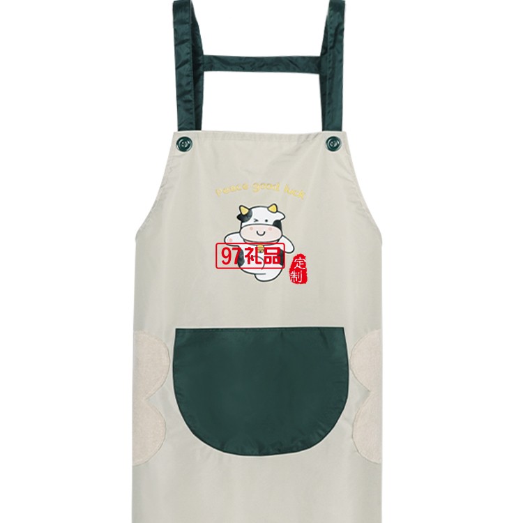廚房防水油圍裙家用男女韓版做飯可擦手可愛卡通小牛圍腰定制公司廣告禮品
