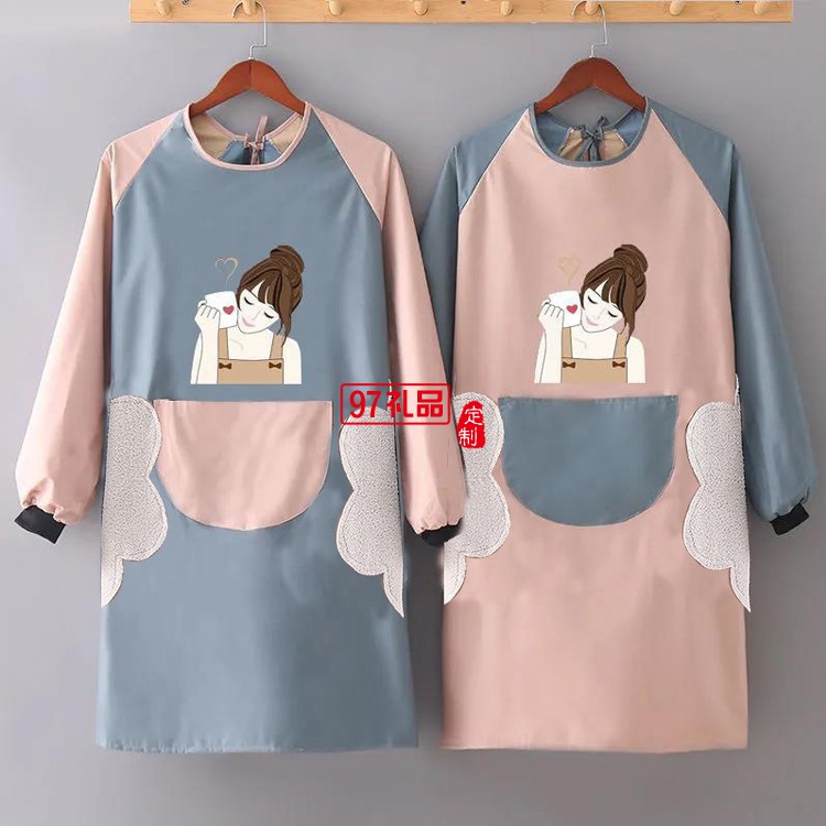 長袖圍裙女家用廚房罩衣大人冬季防水防油工作服男士定制公司廣告禮品
