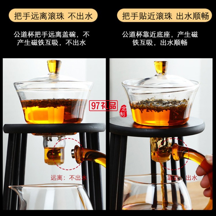 手作宮燈茶具套裝磁吸出水泡茶器玻璃懶人功夫半自動沖茶器