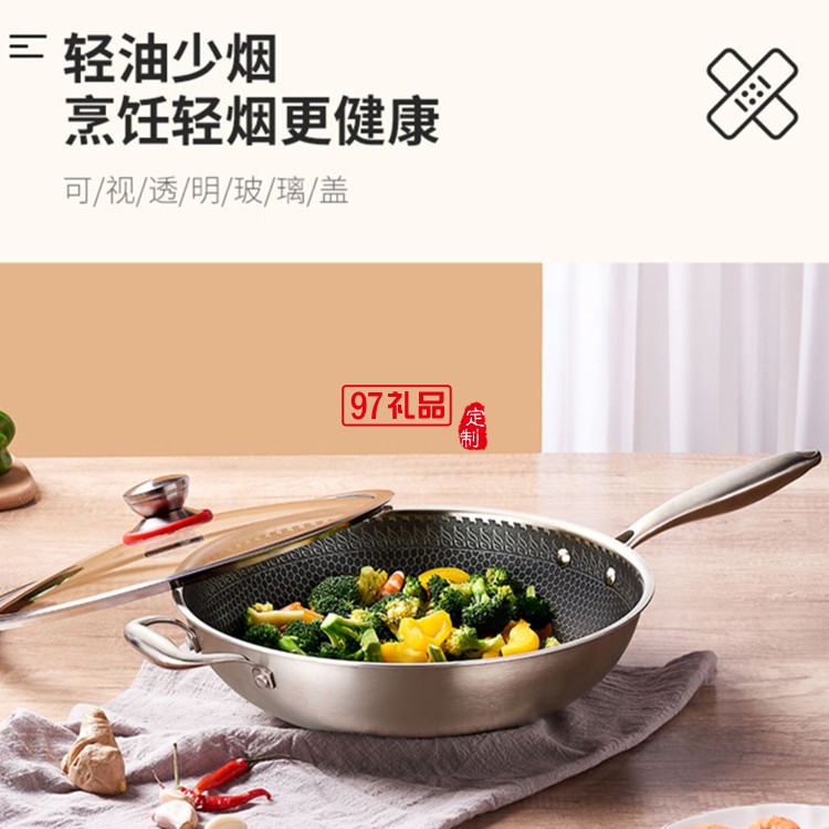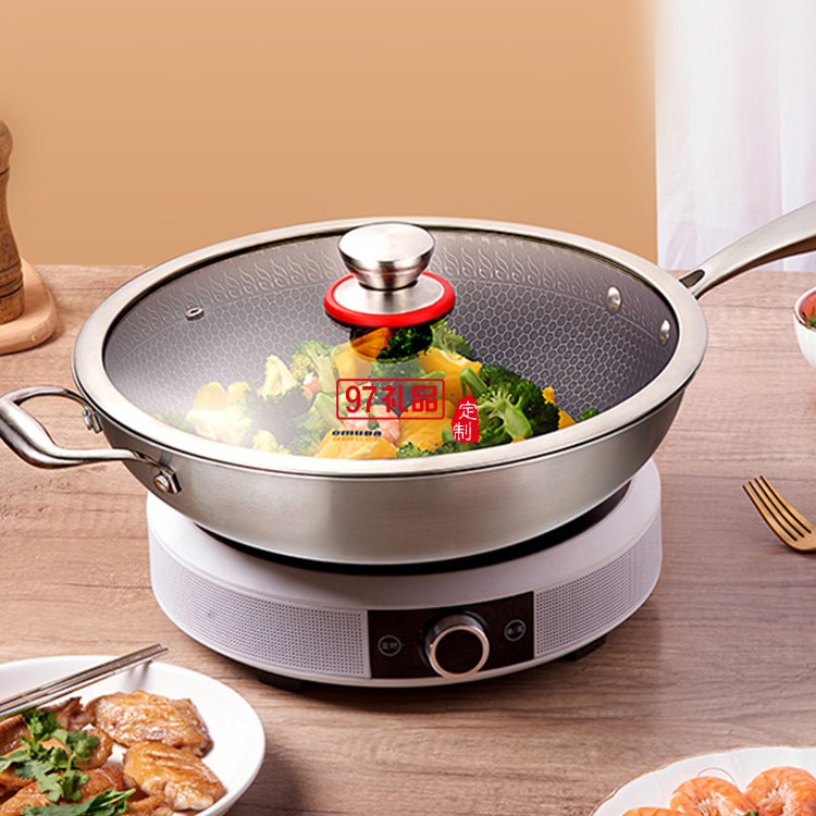 歐美達316不銹鋼平底鍋不粘層炒菜煎鍋物理不粘定制公司廣告禮品