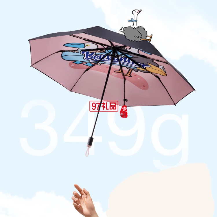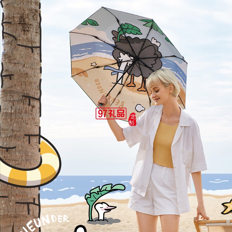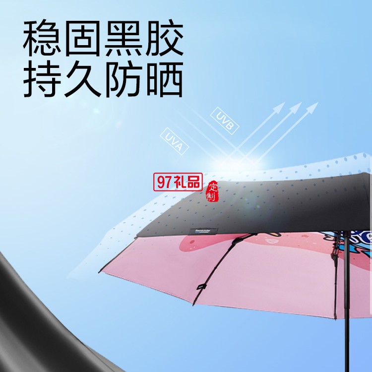 國潮鴕馬斯太陽傘女小巧雙層黑膠隔熱防曬晴雨兩用傘定制公司廣告禮品