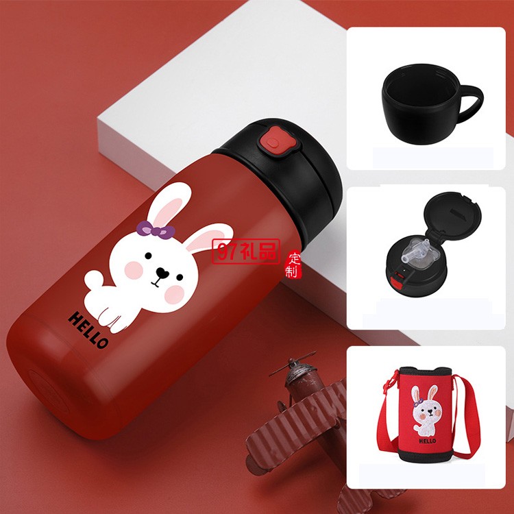 兒童保溫杯帶吸管304不銹鋼兩用便攜水杯送客戶禮品