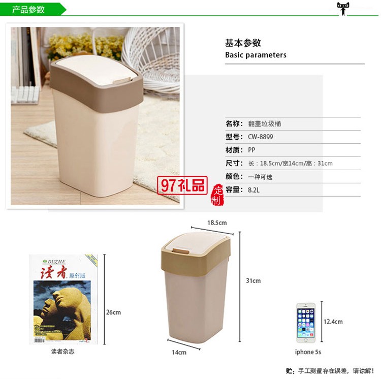 中國銀行定制創意翻蓋垃圾桶家用客廳衛生桶可定制logo